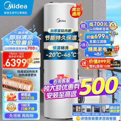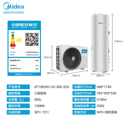 美的(Midea)空气能热水器家用300升电辅蓝钻内胆水电分离智能WIFI包安装发廊适用热水王KF109/RD-X2-300-(E3)