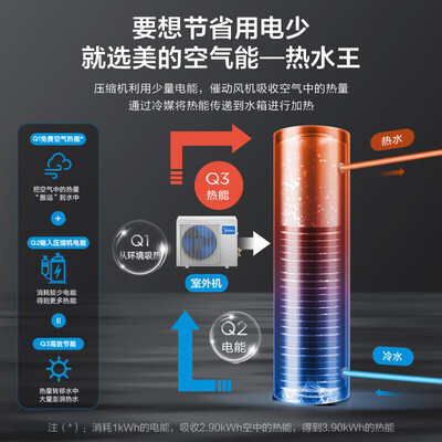 接下来,我们一起看看它的节能环保特性。与传统的电热水器相比,美的空气能热水器采用了热泵技术,能利用空气中的热量来加热,大幅度减少了电力消耗。据实验数据表明,这种热泵技术相比纯电加热方式,节能效率可高达75%,这不仅为用户节省了电费开支,也对环保事业做出了贡献。